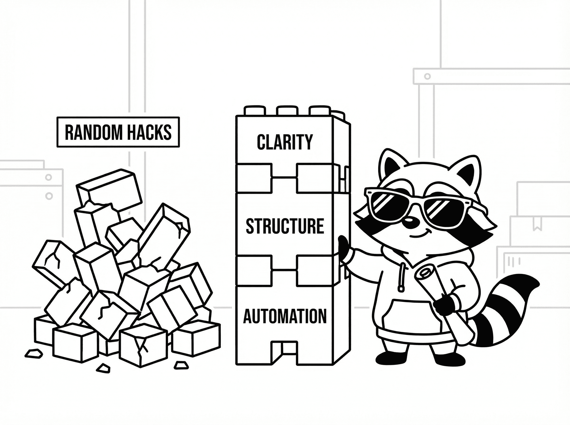Your brand stops depending on luck, mood, or random hacks — and starts running on structure, clarity, and automation.